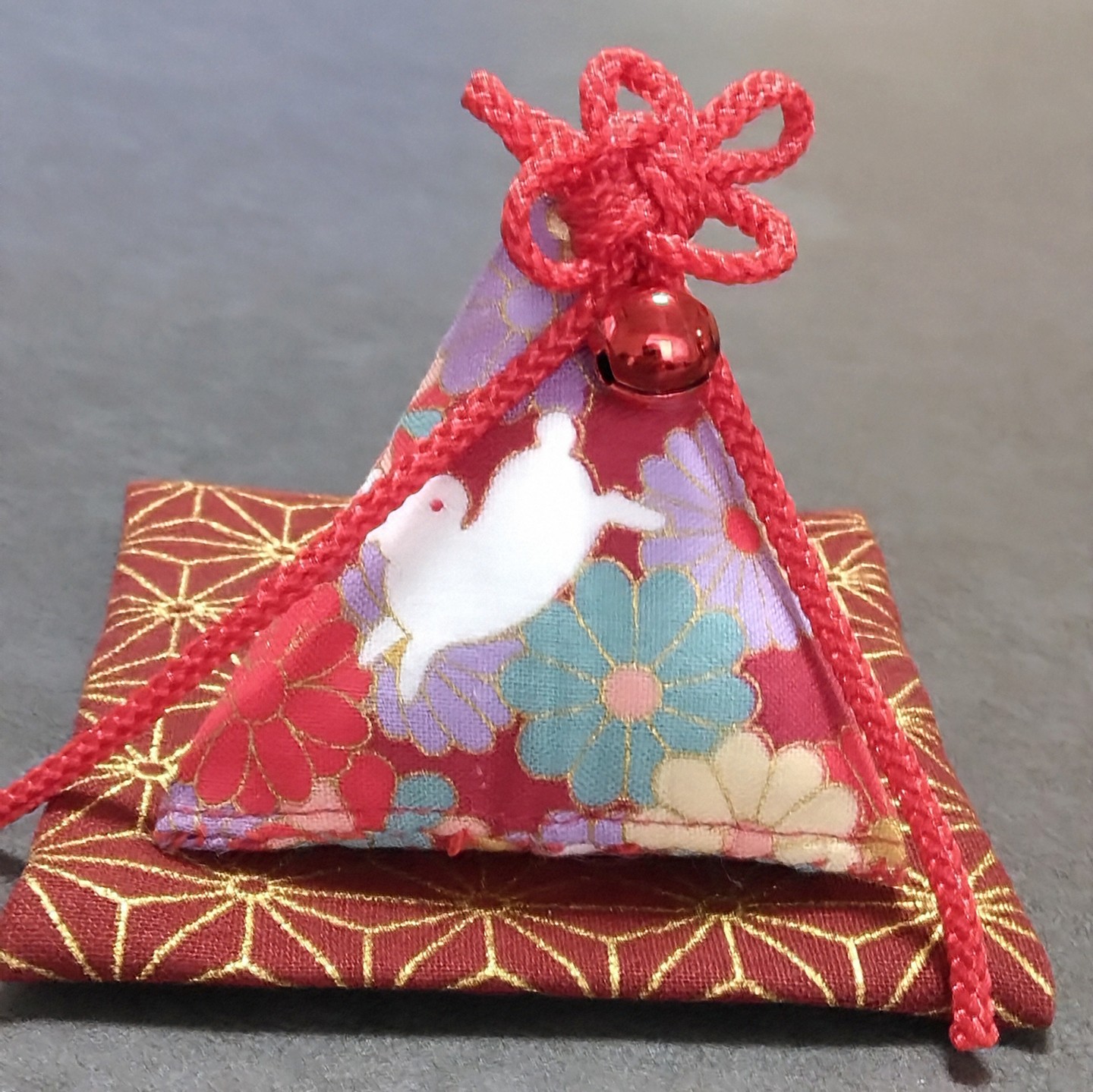三角錐御守り(兎・赤) 御守りと座布団のセット(ケース入り)御守り本体のサイズは、約 幅6cm×高さ6cmです。白檀香ベースのお香が入っています。盛り塩代わりの御守りやインテリアとしてお飾りください。 2,500円(税込) >商品一覧へ